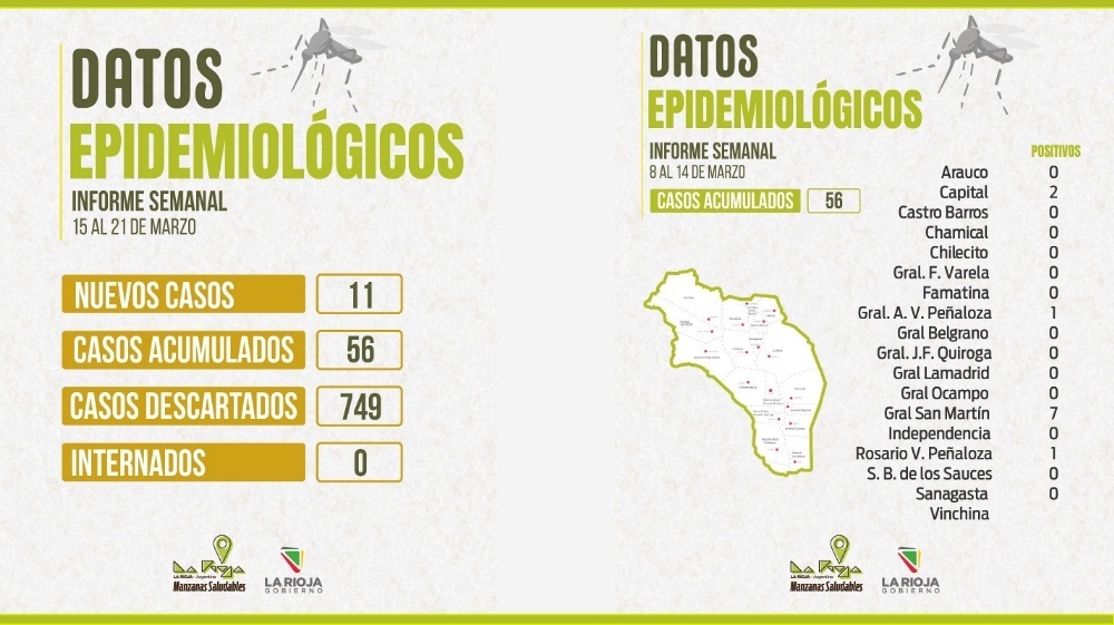 El Ministerio de Salud reportó 11 nuevos casos de dengue en la provincia